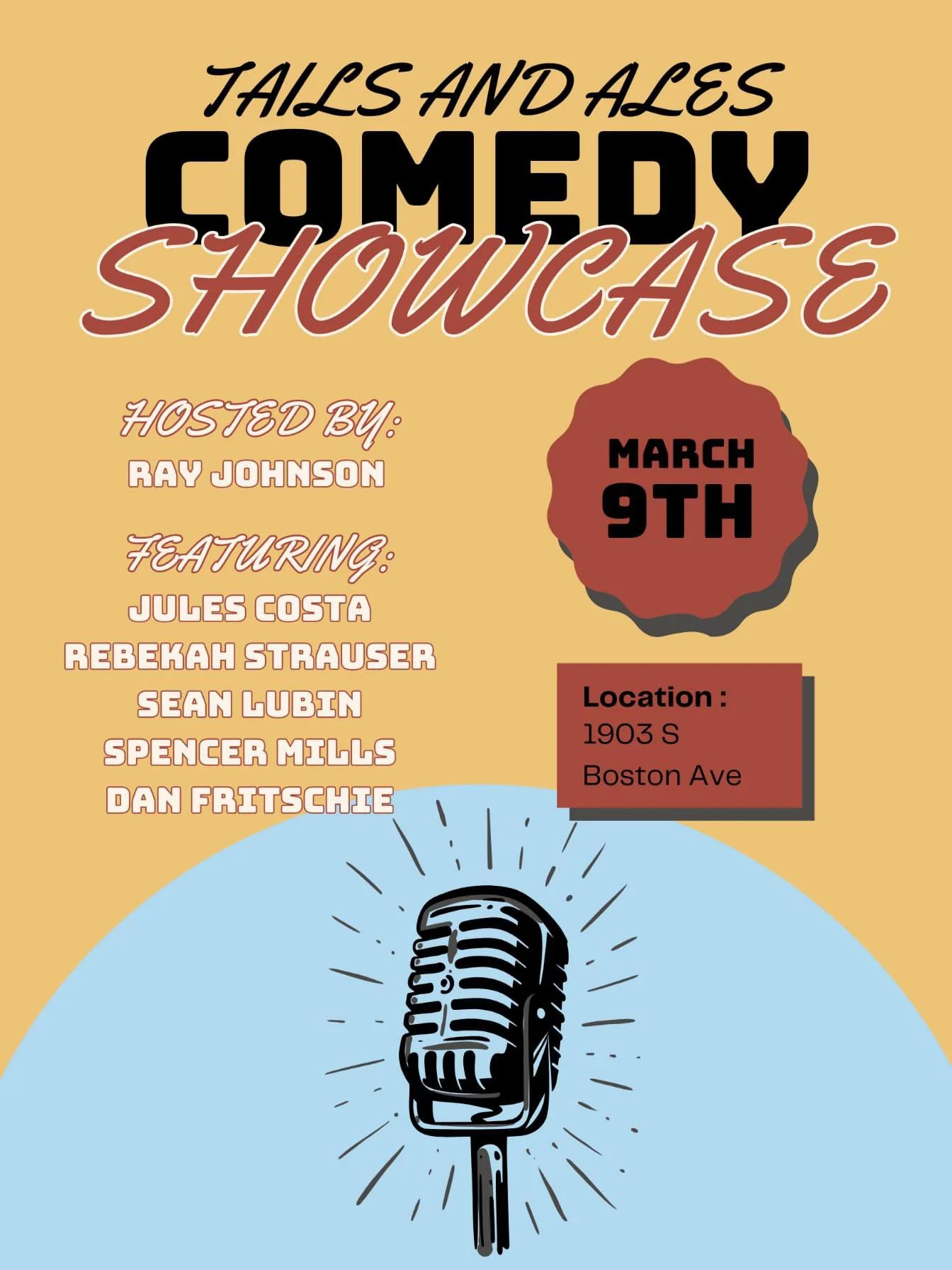 Tulsa, OK Monday, March 9, 2026 6:00 PM 8:00 PM 18:00 20:00 Tails & Ales 1903 South Boston Avenue Tulsa, OK, 74119 United States (map) Google Calendar ICS Sean will be performing at Tails & Ales in Tulsa, Oklahoma on Monday, March 9th at 6pm!www.tailsandalestulsa.com